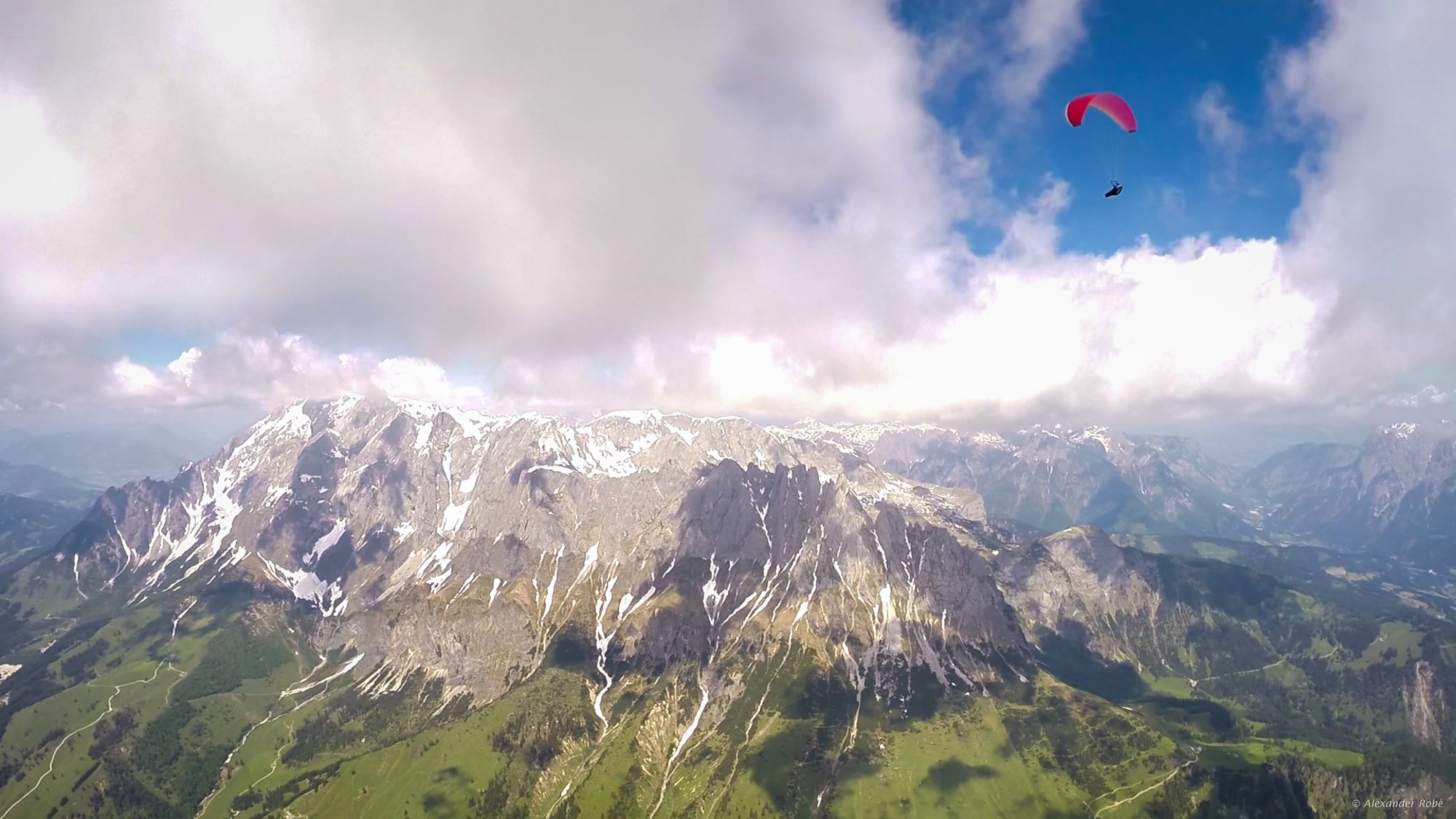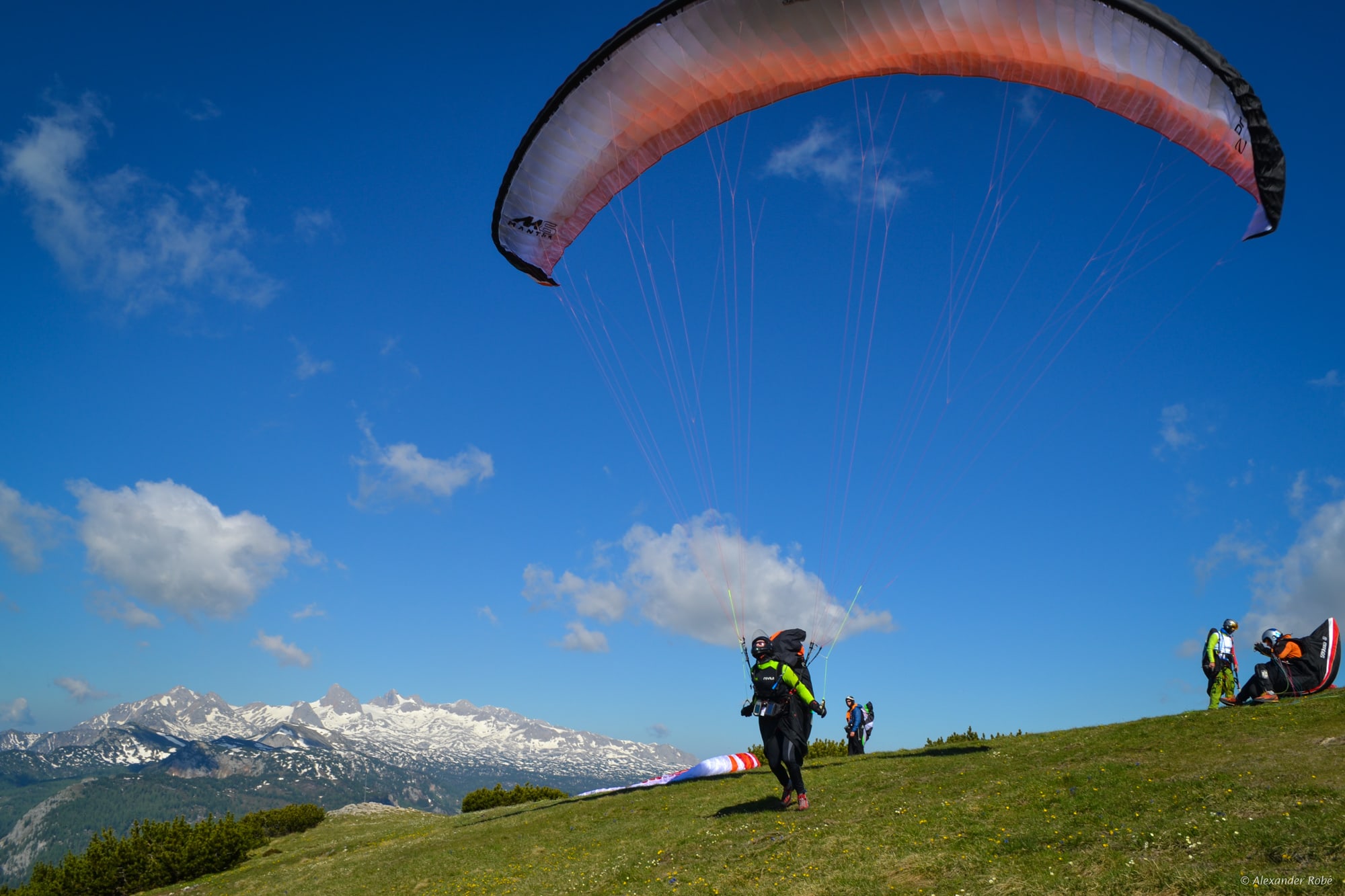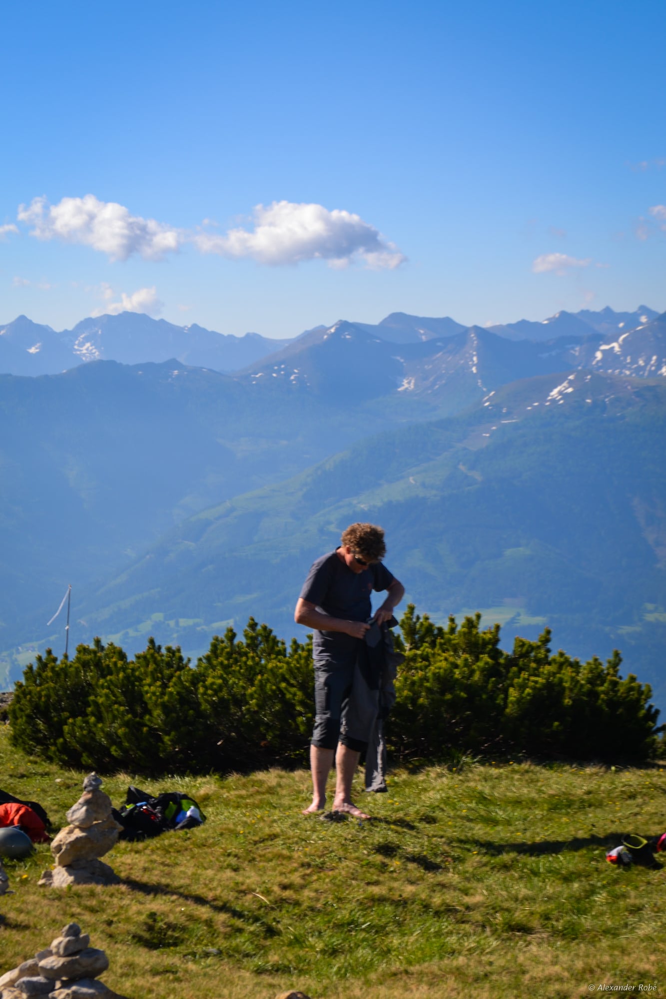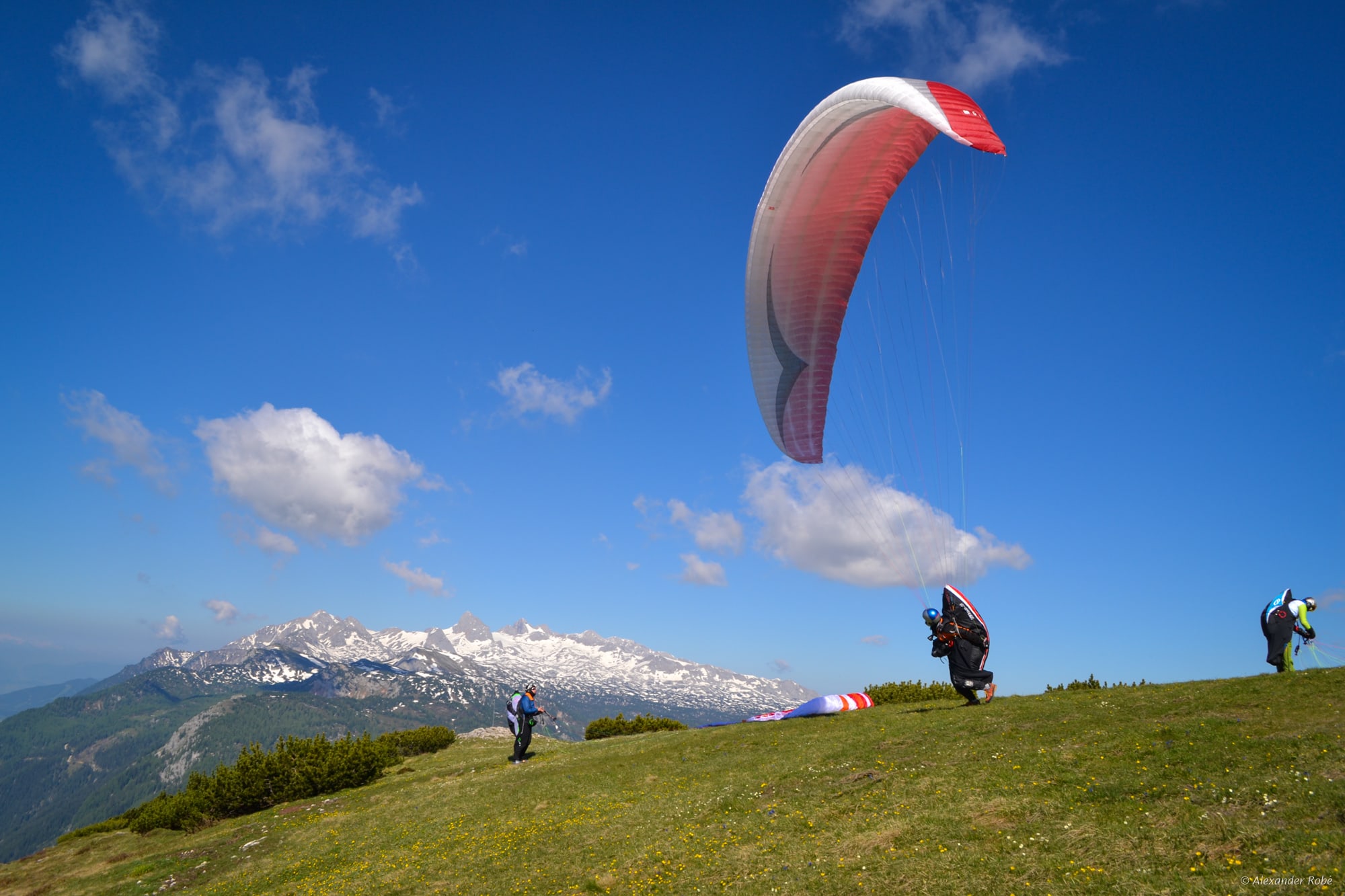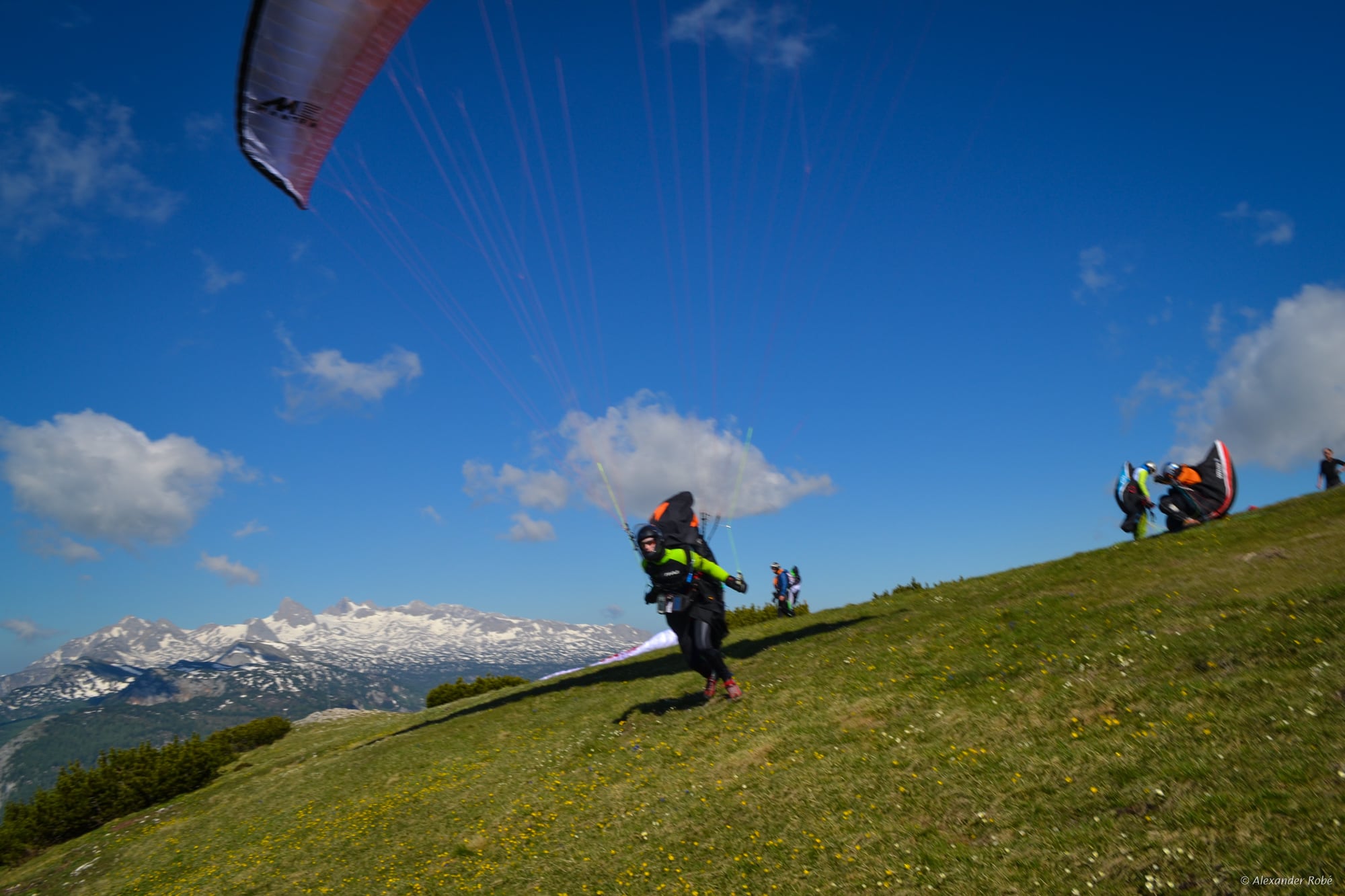 Aber bereits bei Erreichen des Gipfels war klar, dass auch wir heute unsere Chance bekommen sollten: Der Thermikindikator für den Weg gen Westen, der Scheichenspitz (östlich vom Dachstein), zeigte ebenfalls erste Cumulus-Anzeichen!