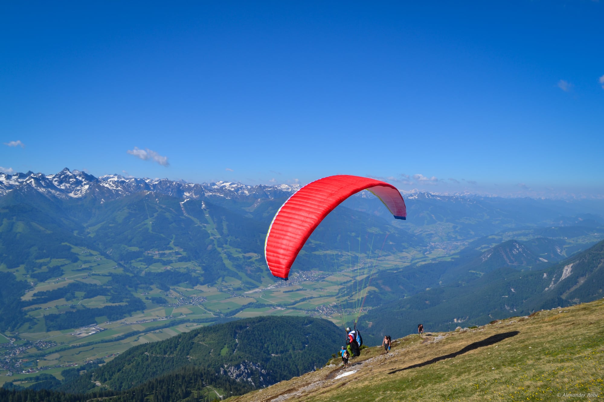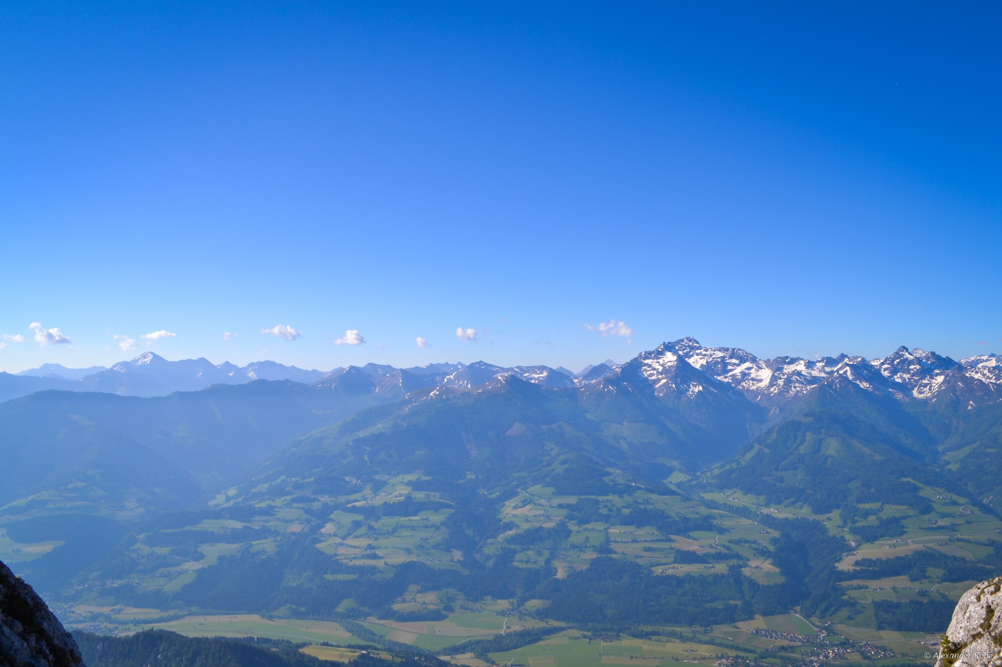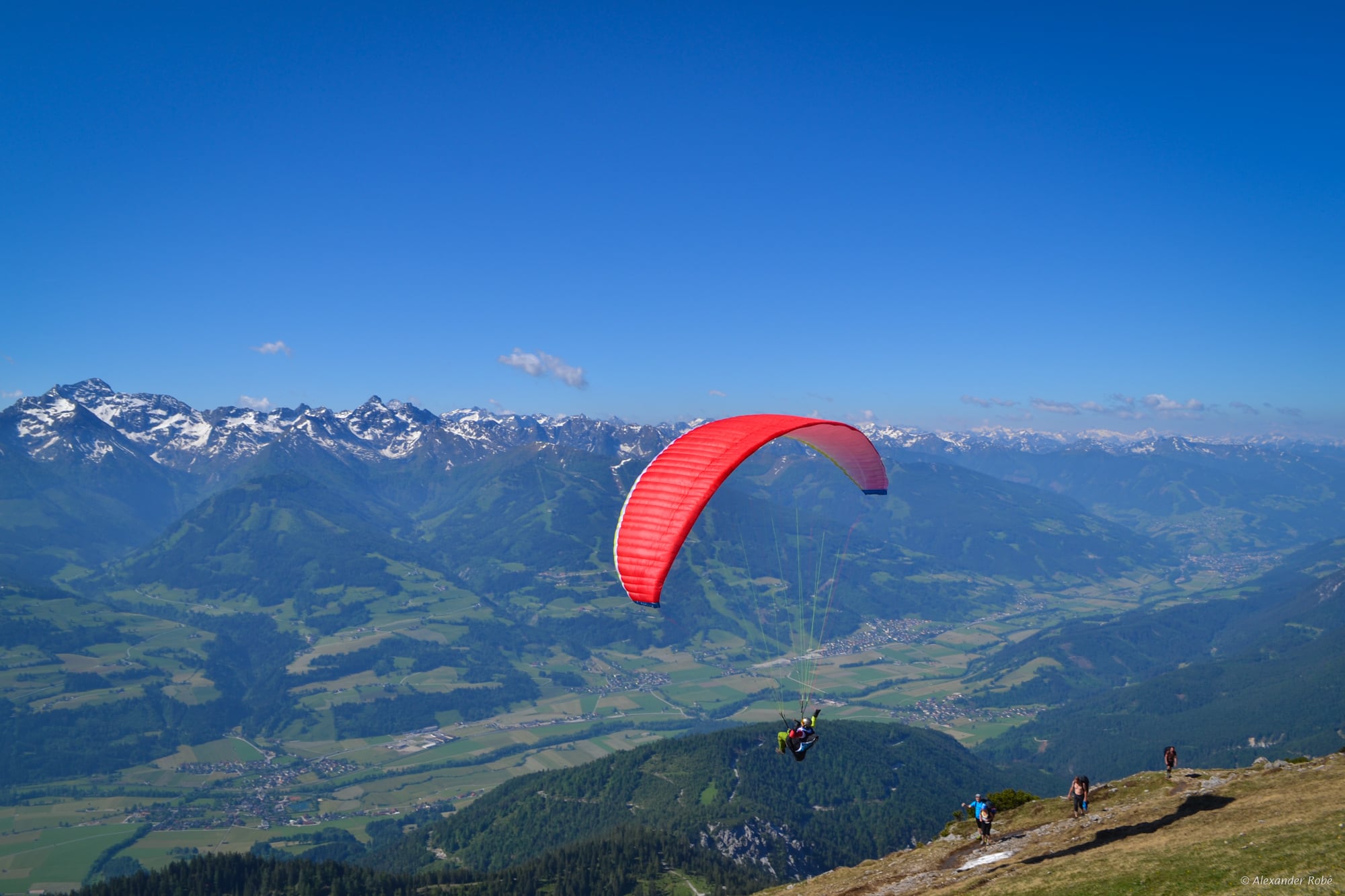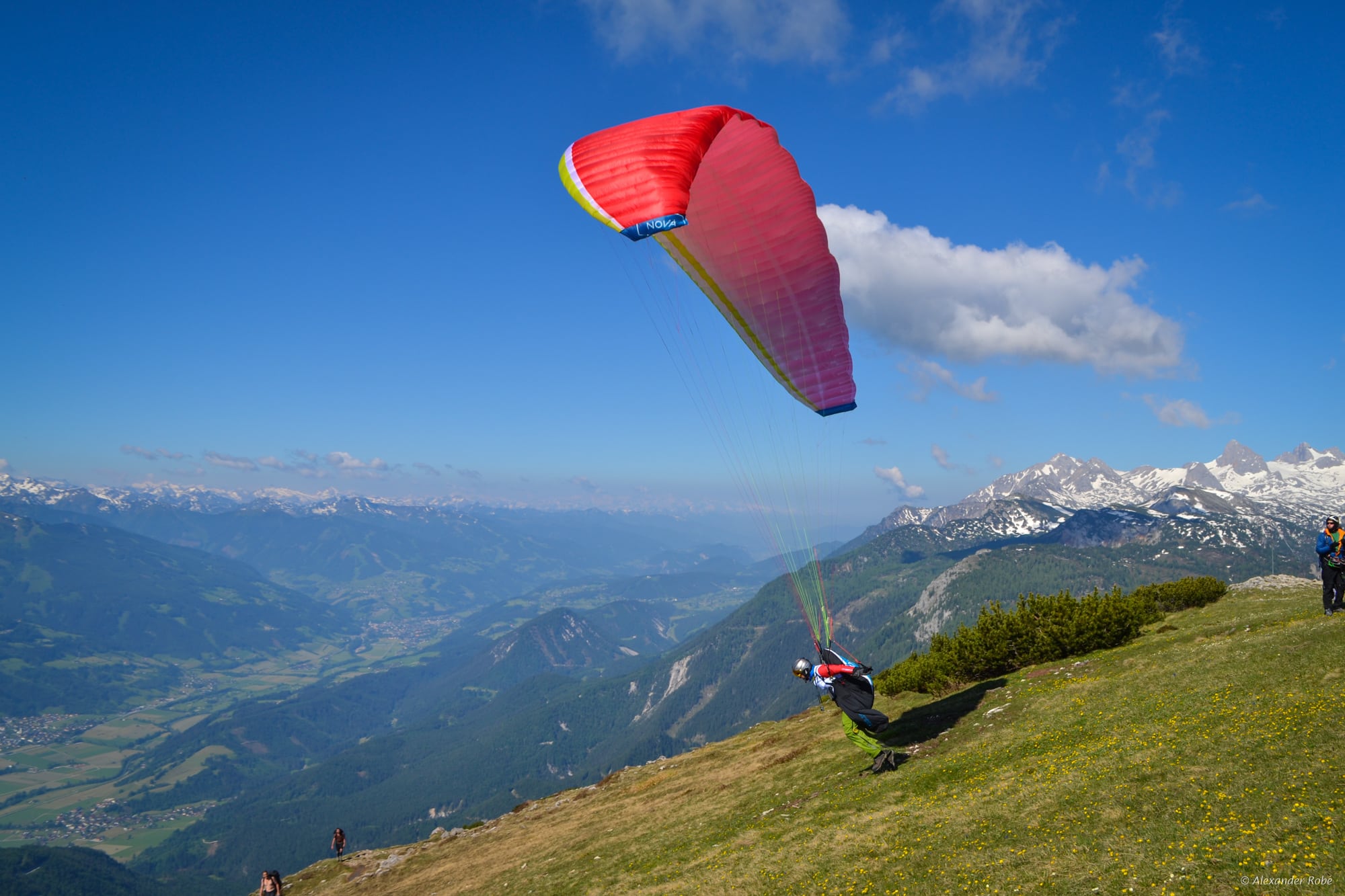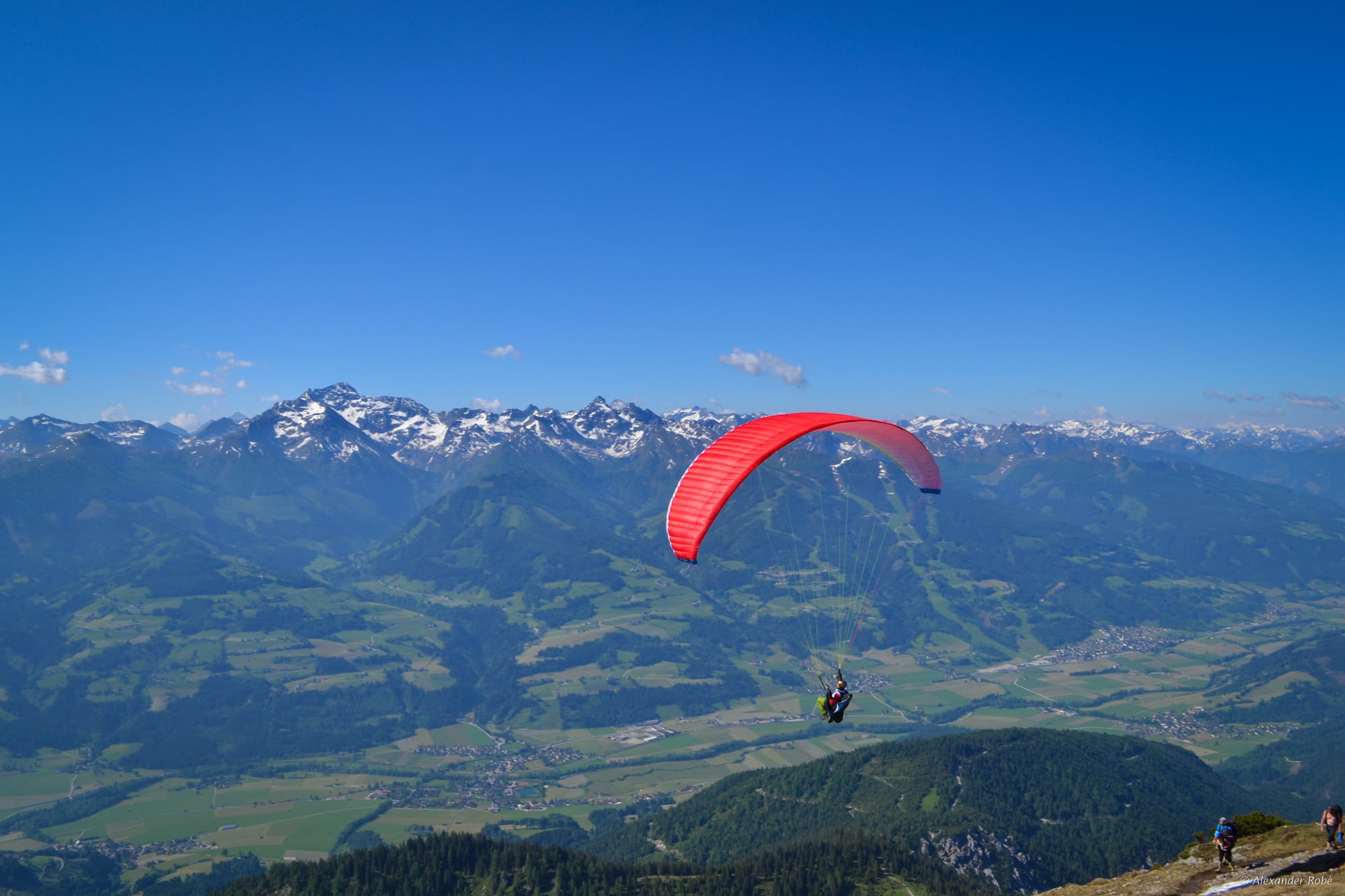 Aber bereits bei Erreichen des Gipfels war klar, dass auch wir heute unsere Chance bekommen sollten: Der Thermikindikator für den Weg gen Westen, der Scheichenspitz (östlich vom Dachstein), zeigte ebenfalls erste Cumulus-Anzeichen!